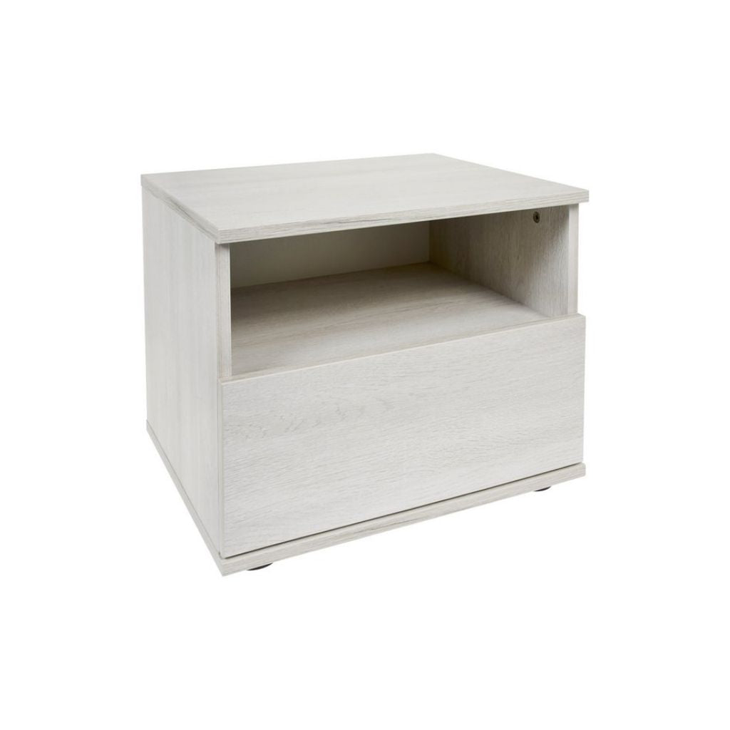 Uit spaanplaat met afwerking in melamine. D 39.6 x B 48.3 x H 39.6 cm.
