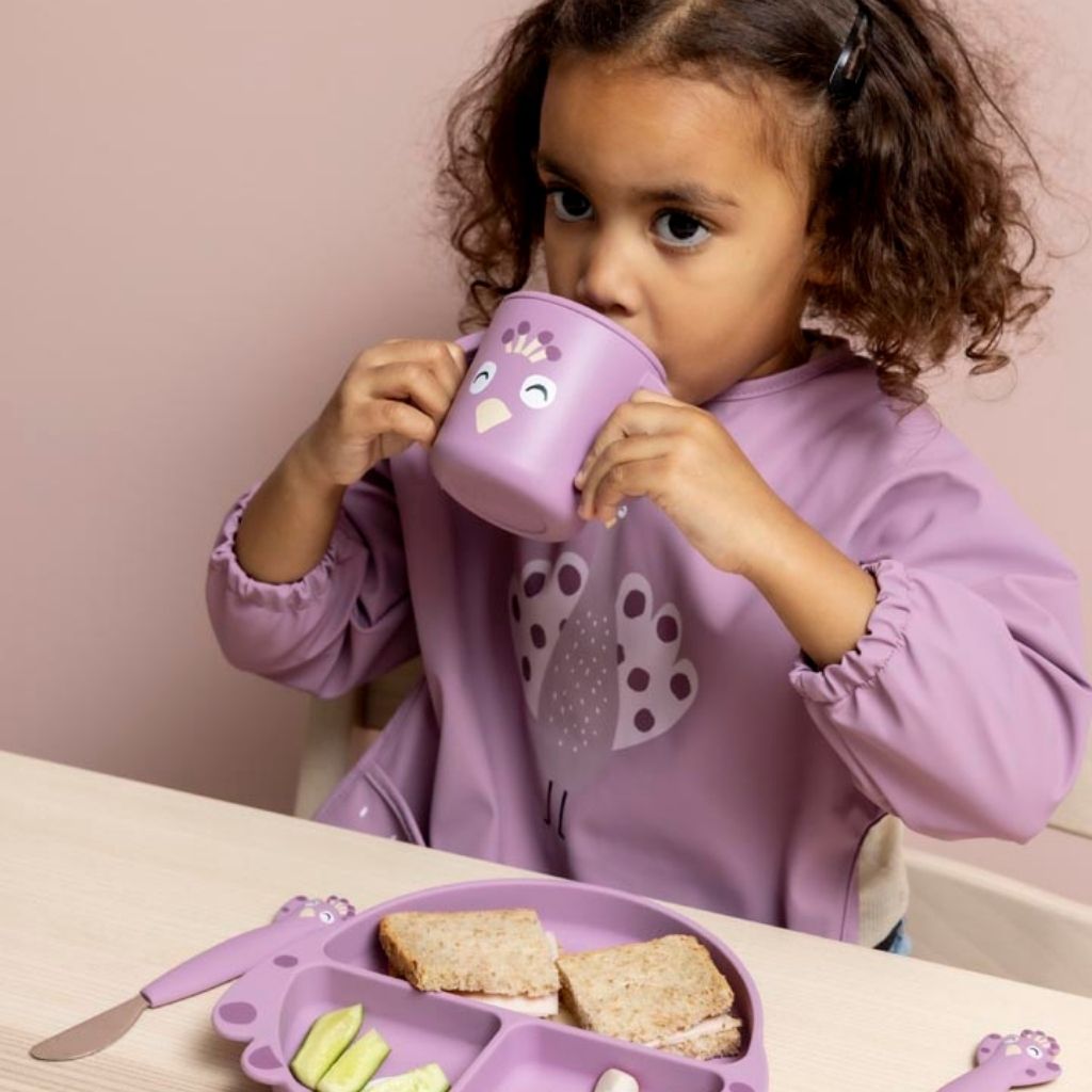 Ontdek de Trixie waterbestendige slab in prachtig paars. Met lange mouwen & opvangzakje, ideaal voor knoeivrije maaltijden. Gemakkelijk te reinigen.