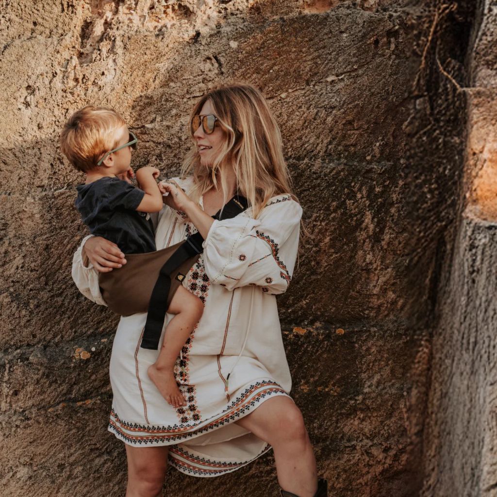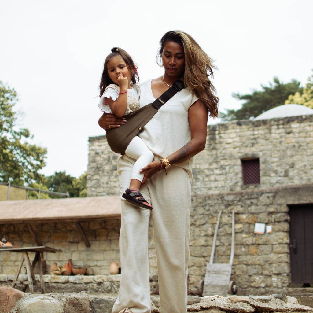 - Deze draagzak is niet geschikt voor lange afstanden, maar biedt vooral extra steun tijdens korte uitjes, zoals boodschappen doen.