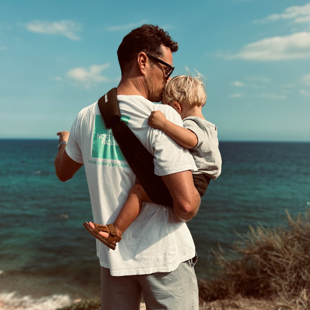 - Je kan de schouderriem afstellen op jezelf en je kindje.